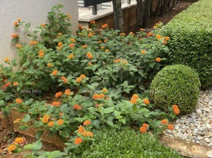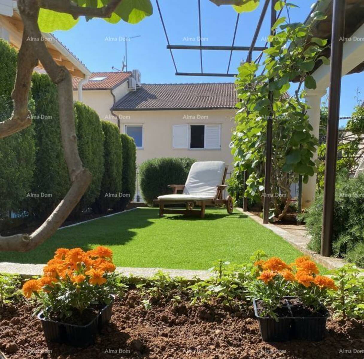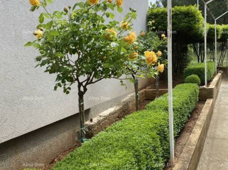 U suterenu se nalazi garaža (21 m²), a uz kuću su dodatna tri parkirna mjesta – jedno natkriveno pergolom s vinovom lozom. Okućnica je njegovana i uređena u stilu ladanjskih vila, s kivijem, mediteranskim biljem i potpunim osjećajem privatnosti.