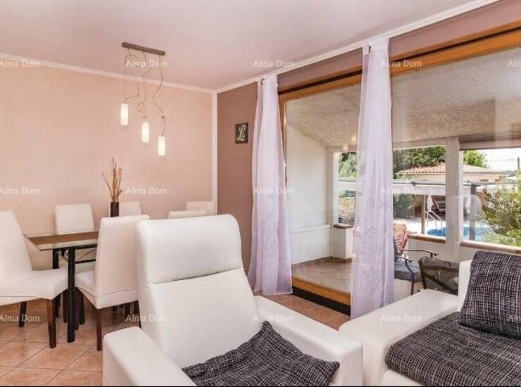 Unutrašnjost kuće sastoji se od četiri prostrane spavaće sobe, dvije kupaonice, dodatnog WC-a te prostranog dnevnog boravka povezanog s kuhinjom i blagovaonicom u open-space konceptu. Nekretnina posjeduje svu dokumentaciju i energetski certifikat C, a uspješno se iznajmljuje tijekom turističke sezone, s mogućnošću nastavka već uhodanog poslovanja.