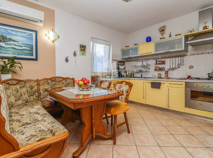 U prizemlju vas dočekuje prostrani stan s kuhinjom, blagovaonicom, dnevnim boravkom, dvije spavaće sobe, kupaonicom, hodnikom i terasom. Na katu se nalazi jedan stan s dvije sobe, kuhinjom, dnevnim boravkom, kupaonicom i zatvorenom terasom te drugi koji se sastoji od kuhinje, dnevnog boravka, sobe, kupaonice, hodnika i terase.