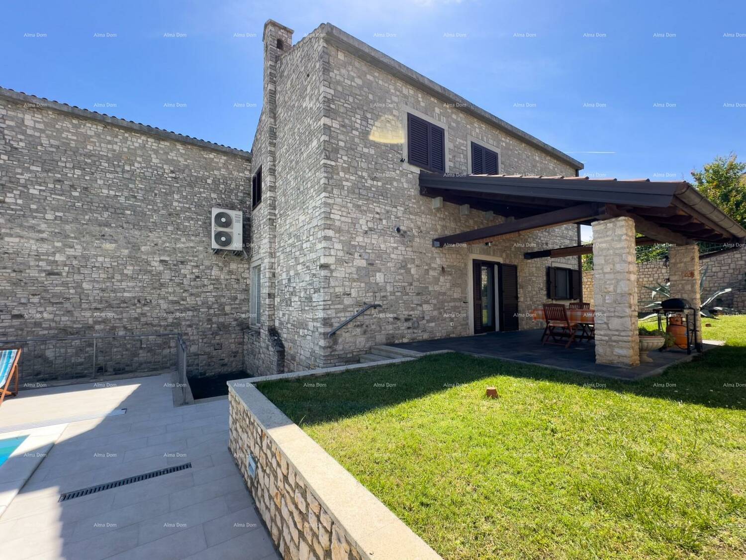 Ova prekrasna kuća u Puli nudi savršenu kombinaciju udobnosti i stila. S površinom od 200 m², smještena na prostranoj parceli od 1055 m², idealna je za veliku obitelj ili kao investicija. Kuća se sastoji od dva odvojena stana, svaki s vlastitim dnevnim boravkom, kuhinjom i terasama. Uživajte u opuštanju uz bazen okružen zrelim borovima. Opremljena svim pogodnostima, uključujući dva WC-a i klima uređaj. Udaljena 3000 m od centra i 1900 m od mora, pruža savršenu ravnotežu privatnosti i blizine svih sadržaja.