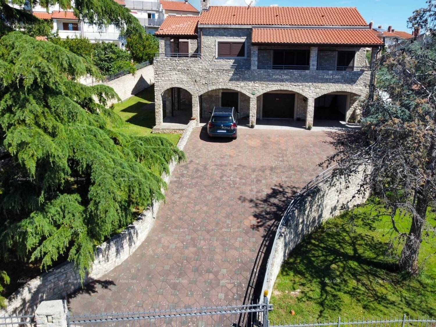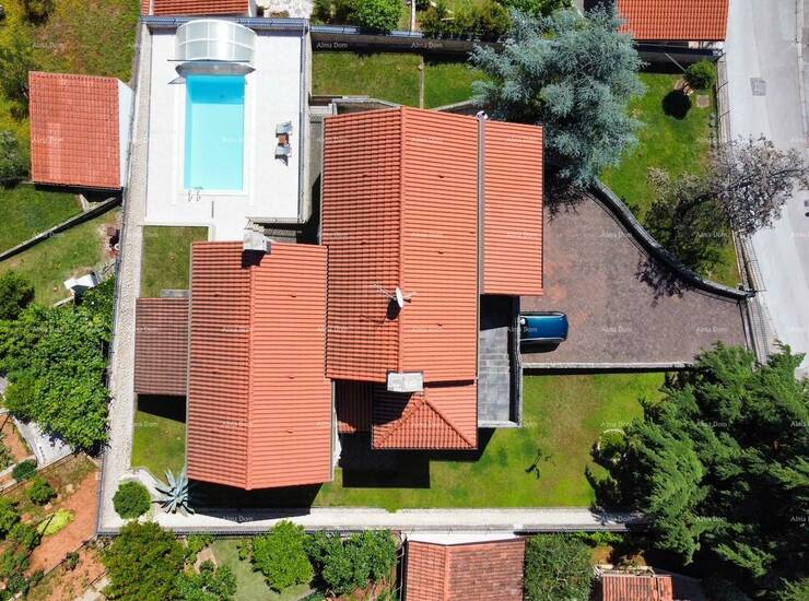 Ova prekrasna kuća u Puli nudi savršenu kombinaciju udobnosti i stila. S površinom od 200 m², smještena na prostranoj parceli od 1055 m², idealna je za veliku obitelj ili kao investicija. Kuća se sastoji od dva odvojena stana, svaki s vlastitim dnevnim boravkom, kuhinjom i terasama. Uživajte u opuštanju uz bazen okružen zrelim borovima. Opremljena svim pogodnostima, uključujući dva WC-a i klima uređaj. Udaljena 3000 m od centra i 1900 m od mora, pruža savršenu ravnotežu privatnosti i blizine svih sadržaja.