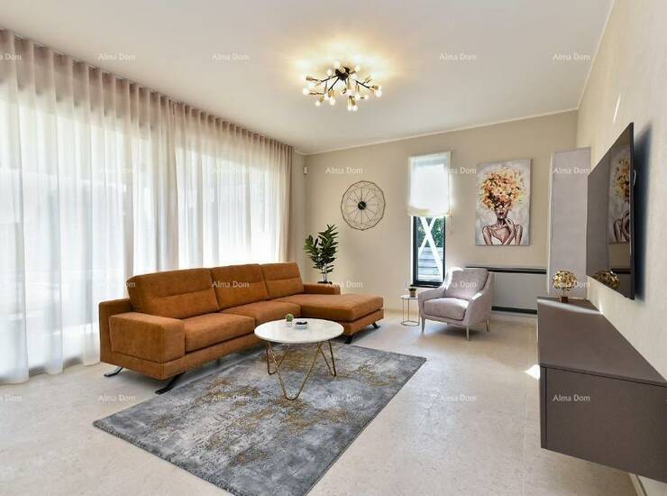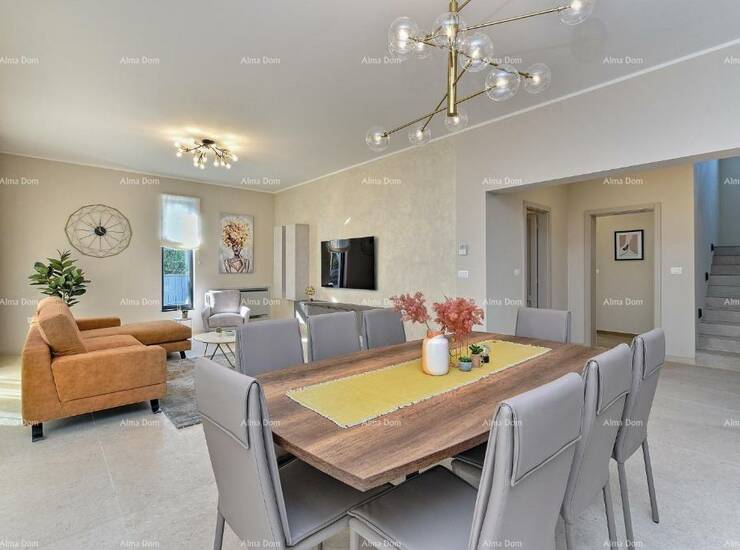 Vila ima 4 spavaće sobe, dnevni boravak, opremljenu kuhinju te 3 kupaonice s tušem i kadom. Ukupna površina objekta 342m2, vrt 461m2, bazen 42. Terasa ima oprema za roštilj