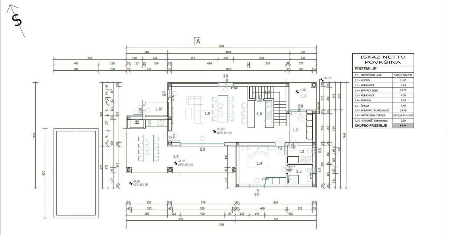 Kuća modernog dizajna, sastoji se od prizemlja i 1.kata, koji uključuju: prostrani dnevni boravak, kuhinju, blagovaonicu, više spavaćih soba i kupaonica.