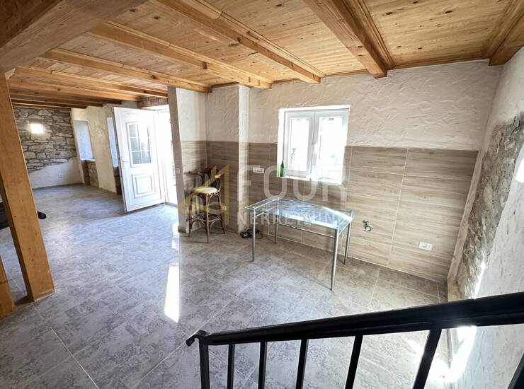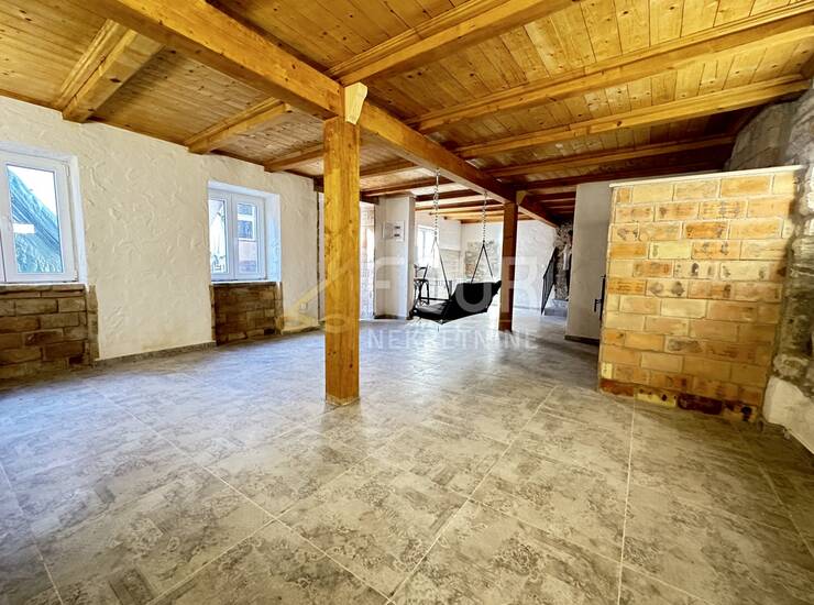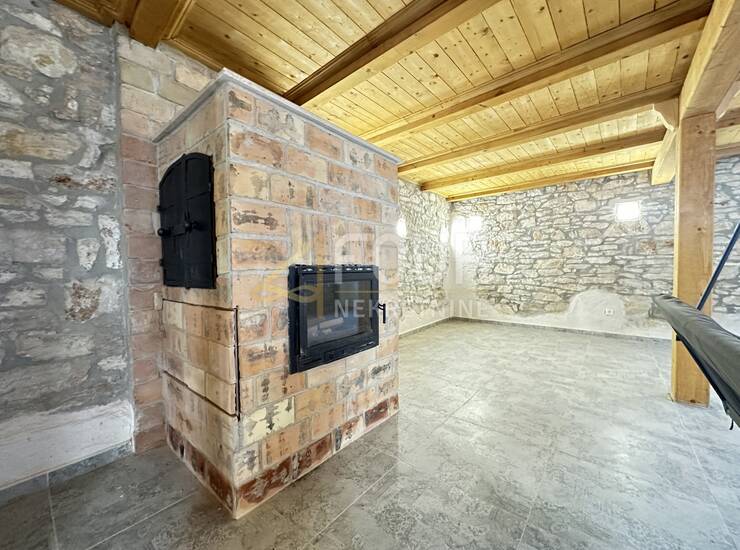 Nekretnina posjeduje dodatne prostore poput konobe, drvarnice i podruma. Opremljena je PVC stolarijom, kaminom i peći na drva.