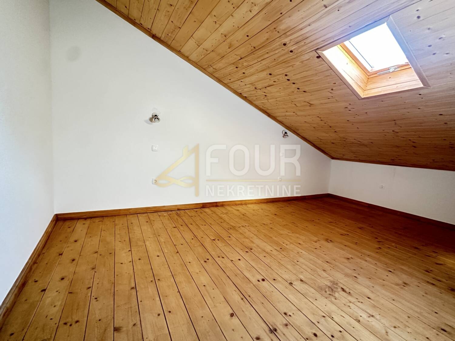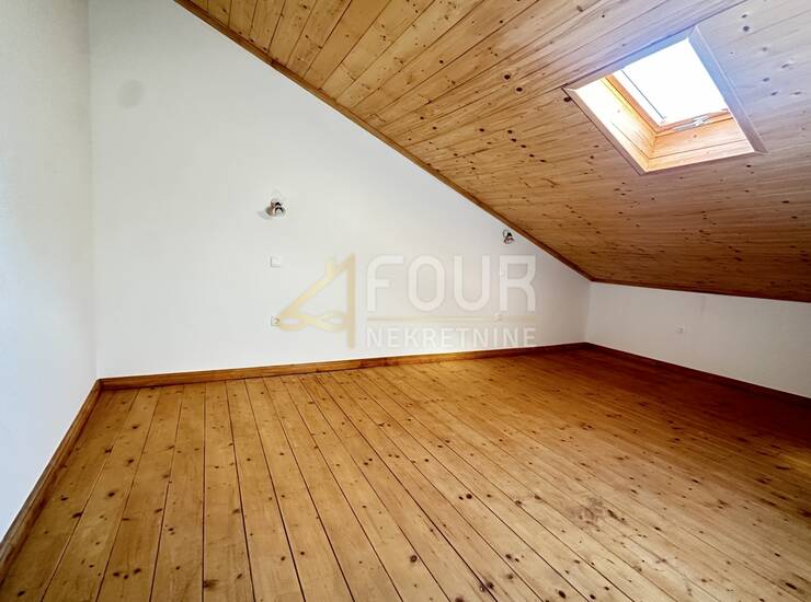 Prva kuća, površine 130 m2, smještena je uz ulicu i ima obnovljenu fasadu. Organizirana je kao prizemnica s dva potpuno odvojena stana – svaki s vlastitim ulazom iz centralnog hodnika. Jedan se stan dugoročno iznajmljuje, dok se drugi kao poslovni prostor. Postoji mogućnost nadogradnje dodatne etaže ili podizanja krova, kao i uređenja prostranog podruma iste kvadrature.