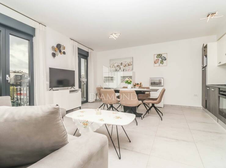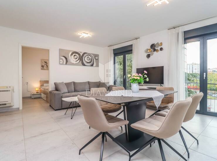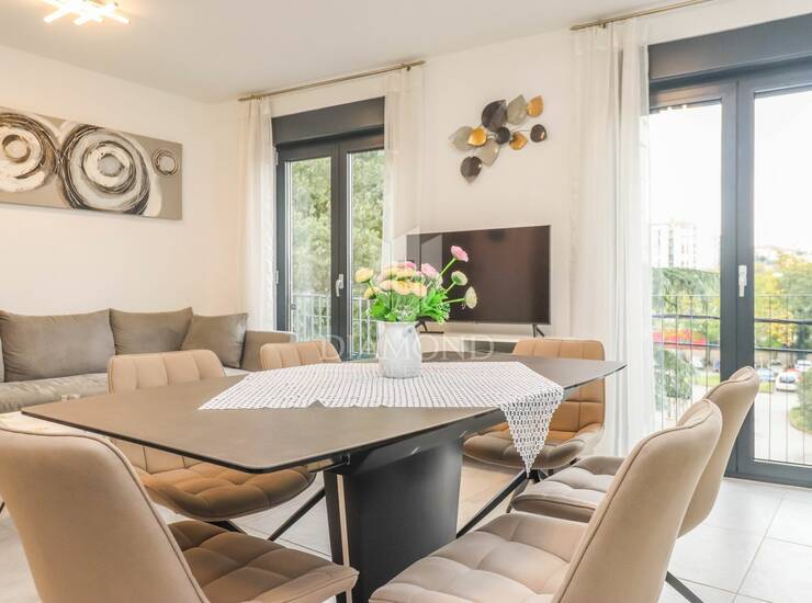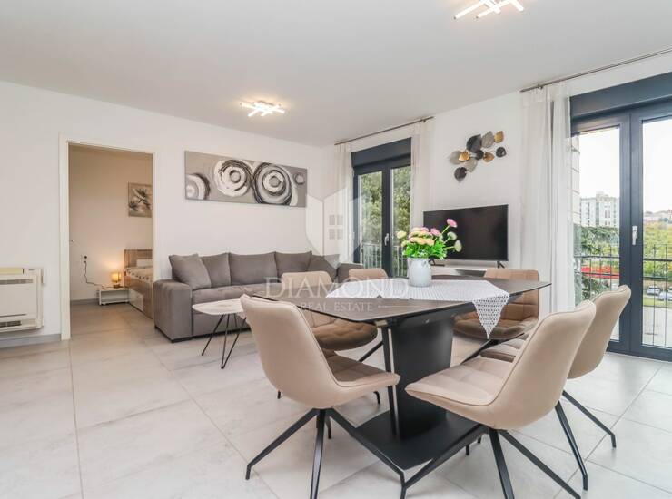 Riječ je o novoizgrađenoj kući visoke kvalitete gradnje, koja se prostire na tri etaže i sadrži tri zasebna, moderno opremljena stana. Objekt ima i garažu koja se prostire na 50 m2 s dva parkirna mjesta. U prostoru garaže nalazi se tehnička prostorija s dizalicom topline, vešeraj te dodatni toalet. Iz garaže, kao i s glavnog ulaza, pristupa se unutarnjem stubištu koje vodi prema stambenim jedinicama. U prizemlju se nalazi prvi stan veličine 55 m2 a koji obuhvaća prostrani dnevni dio s kuhinjom i blagovaonicom, dvije spavaće sobe (jedna s izlazom u dvorište) te moderno uređenu kupaonicu s walk-in tušem i podnim grijanjem. Na prvom katu nalazi se stan s gotovo identičnim rasporedom, kvadrature 56 m2 uz dodatak balkona s pogledom na vrt, dok se na drugom katu nalazi simpatičan stan u potkrovlju koji uključuje dnevni boravak, kuhinju, blagovaonicu, jednu spavaću sobu, kupaonicu i krovnu terasu idealnu za opuštanje. Stan