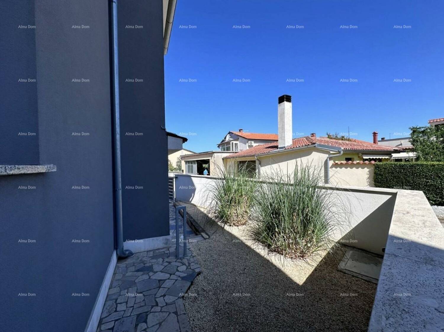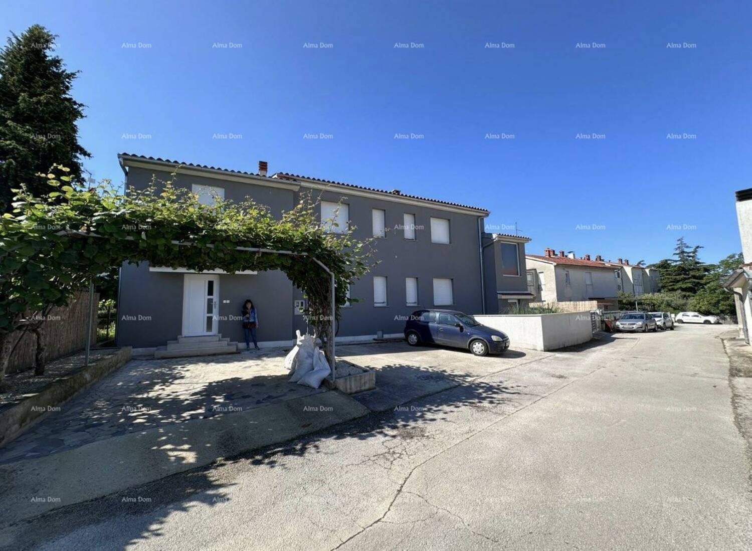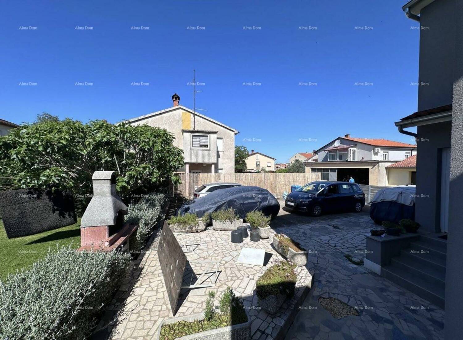 8 parkirnih mjesta na okućnici koja je ograđena zidom te na parceli 88 borova te ukrasno bilje.