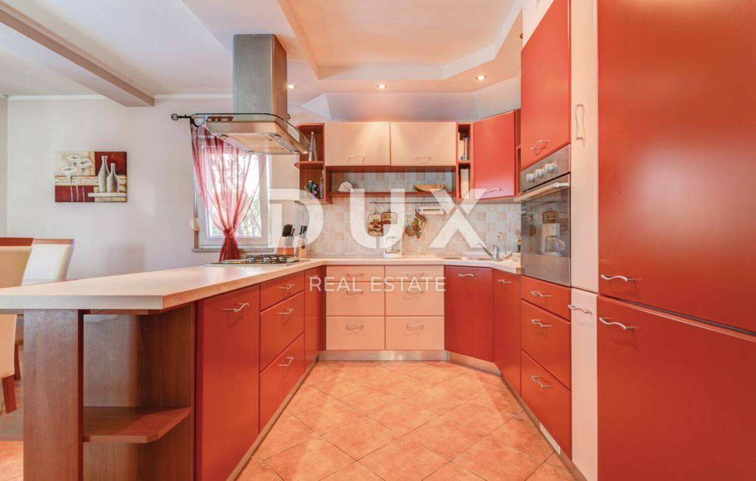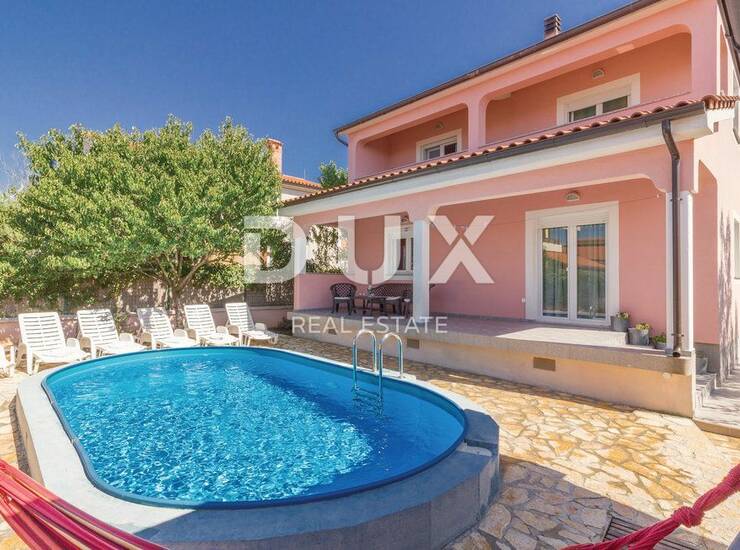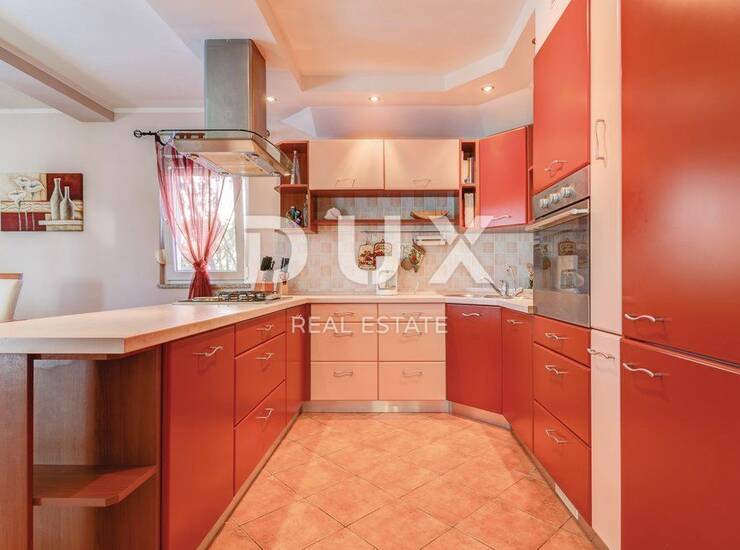 Na periferiji grada Pule, smjestila se ova prekrasna obiteljska kuća a proteže se kroz prizemlje i prvi kat. Ukuone je stambene površine 206m2 te se u prizemlju nalazi dnevni boravak, kuhinja s blagovaonicom, kupaonica te praonica. Unutarnjim stubištem dolazimo na prvi kat koji skriva 4 spavaće sobe, kupaonicu i balkon. Na okućnici od 328m2 smjestio se bazen od 17m2, sunčalište, uređena zelena i kamena površina, garaža te dva vanjska parkinga za automobile.