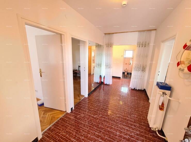 Vanjske stepenice vode na 1. kat na kojem se nalazi stan od 157 m2 s dvije spavaće sobe ( jedna soba s terasom ), toaletom, kupaonicom, kuhinjom s blagavaonicom te prostranim dnevnim boravkom. Iz boravka izlaz na terasu od 15 m2.