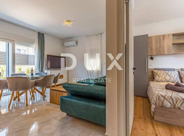 Na svega 3km od prvih plaža i 3km od samog centra grada, nalazi se ova moderna villa. Proteže se kroz prizemlje i prvi kat te je ukupne stambene površine 100m2. Sastoji se od ulaznog hodnika, dnevnog boravka s kuhinjom i blagovaonicom, jedne spavaće sobe i kupaonice u prizemlju. Unutarnjim stubištem penjemo se na prvi kat gdje se nalaze dvije spavaće sobe i jedna kupaonica. Villa je građena kvalitetno te su i prilikom uređivanja interijera korišteni kvalitetni i moderni materijali. Nekretnina je u potpunosti namještena i kao takva se i prodaje. Sve su prostorije klimatizirane a u kupaonicama je sprovedeno podno grijanje.