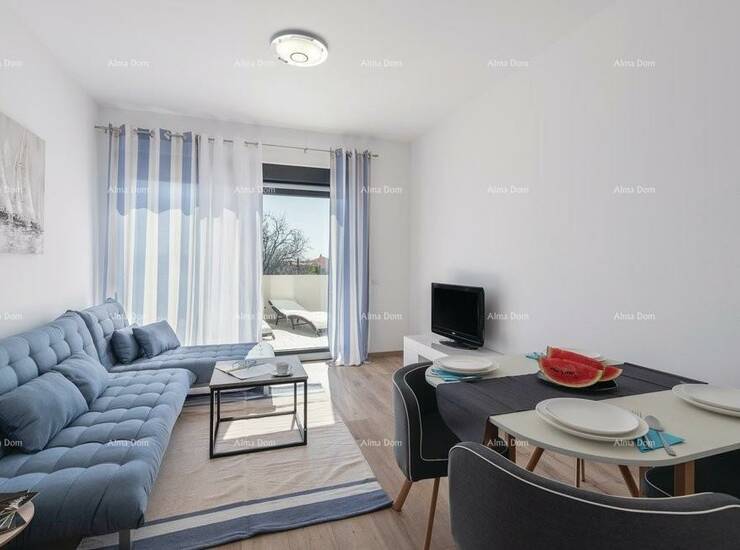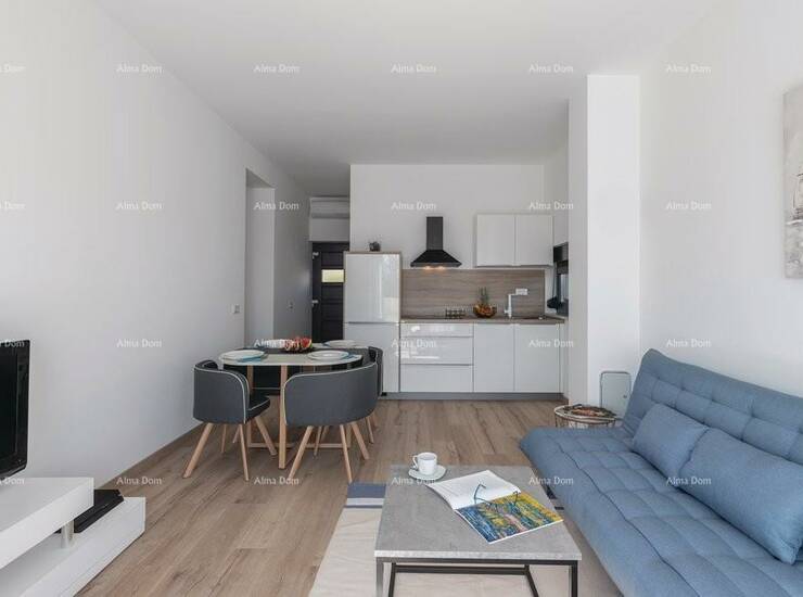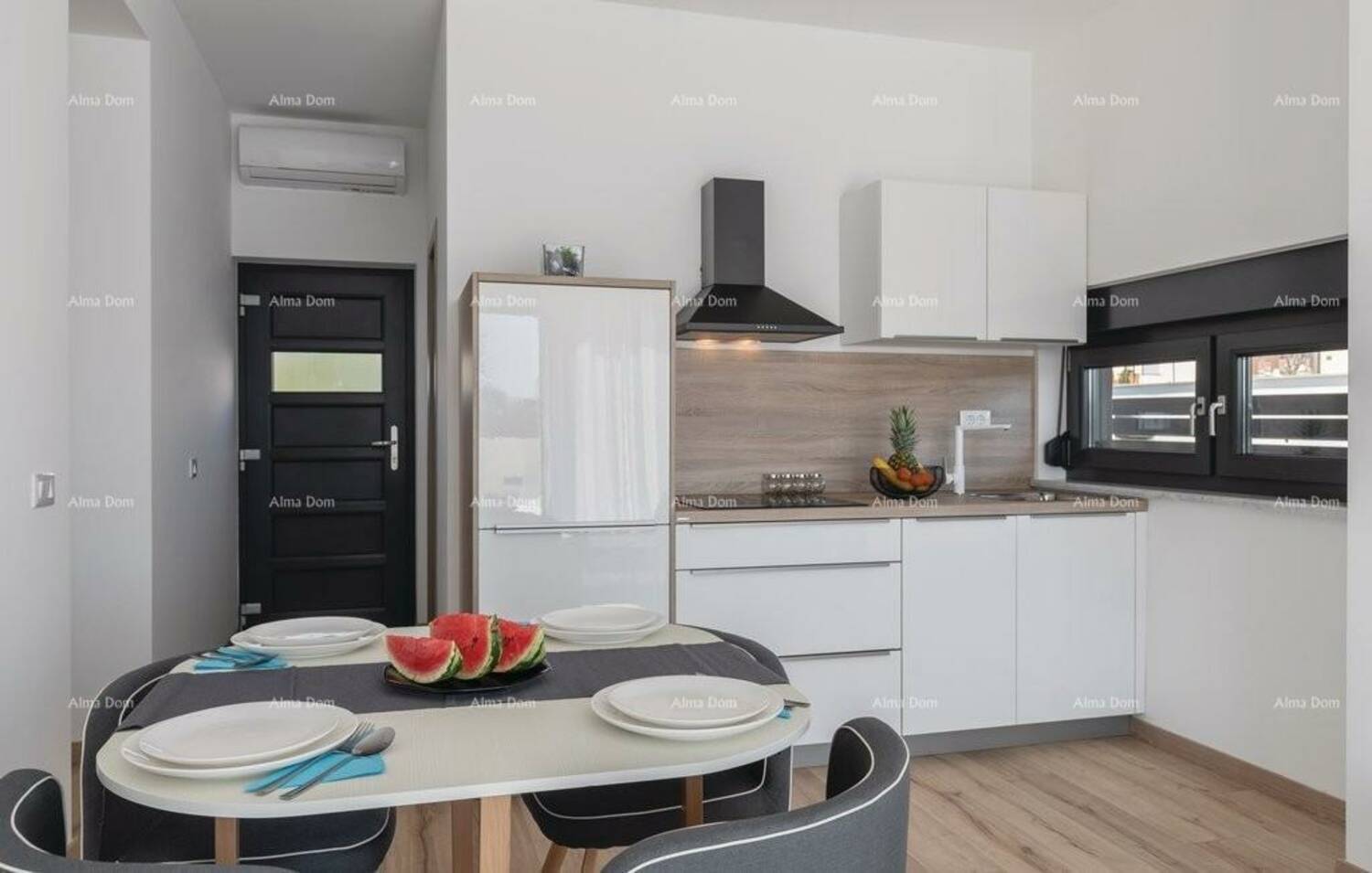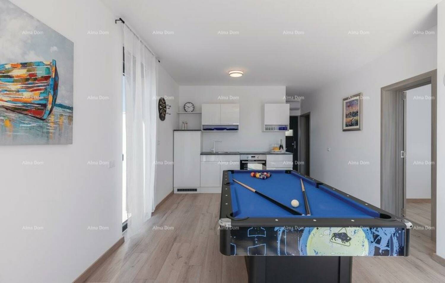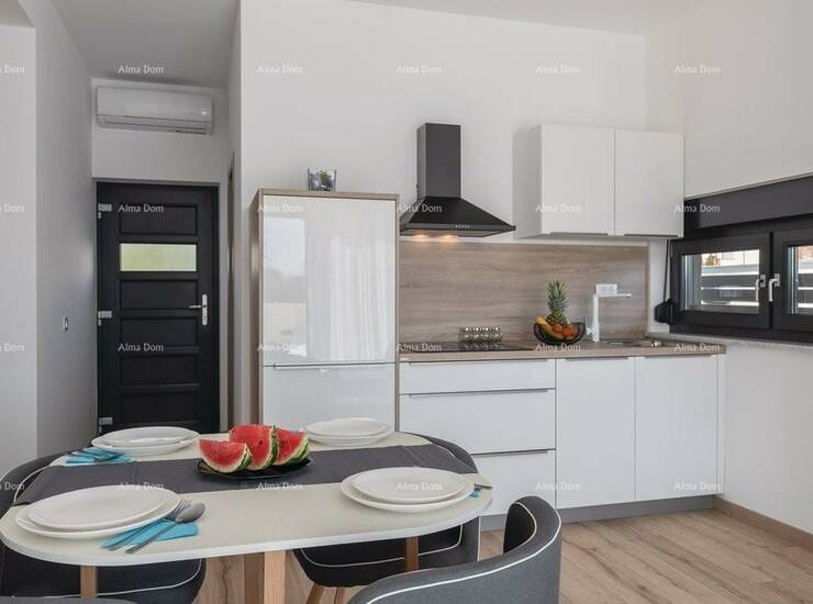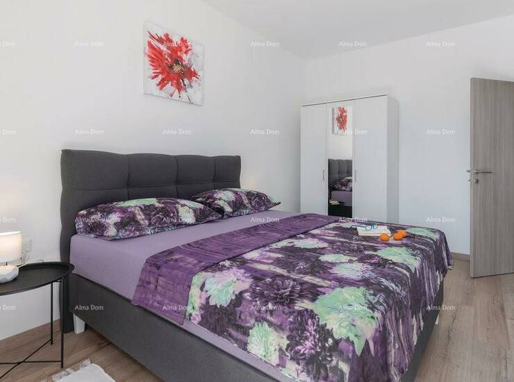 Nedaleko od Pule smještena je luksuzna vila na 2 .etaže. U prizemlju nalaze se 2 stana od 52 m2, sastoje se od 2 spavaće sobe svaka sa svojim kupatilom, kuhinja s blagovaonicom i dnevnim boravkom s kojeg se direktno izlazi na vanjsku terasu i bazen. Na gornjoj etaži nalazi se veliki stan od 104 m2 i terase, koji se sastoji od 3 spavaće sobe, 2 kupatila, kuhinja s blagavaonicom, dvevnim boravkom. Svi stanovi su opremljeni inverter klimom za grijanje i hlađenje. Ispred kuće nalazi se natkrivena terasa sa roštiljem, 4 parkirna mjesta.