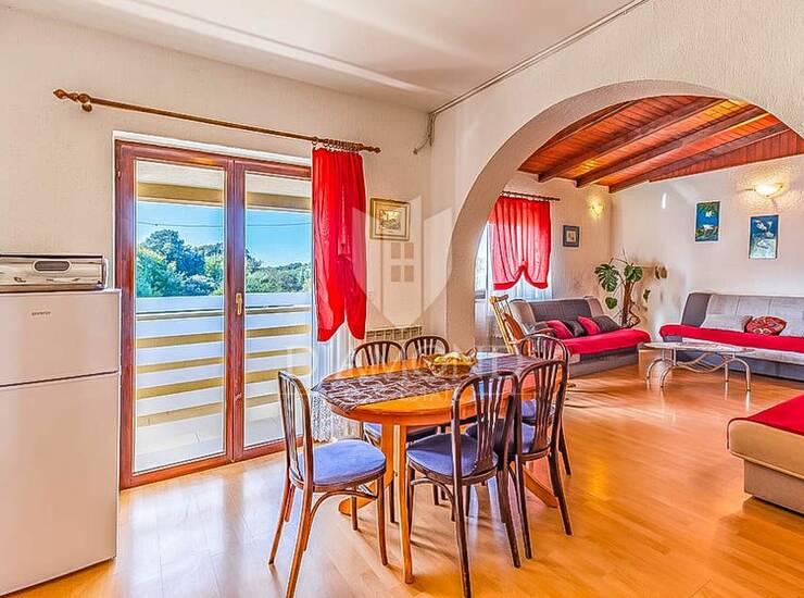 Ova samostojeća kuća podijeljena je u 4 stana. Dva stana nalaze se u prizemlju dok se ostala dva nalaze na prvom i drugom katu. Prvi stan u prizemlju proteže se na 74m2. Sastoji se od 2 spavaće sobe, 2 kupatila, 2 kuhinje, dnevnog boravka te izlaza na terasu. Drugi stan u prizemlju ima 50m2 i sastoji se od jedne spavaće sobe, dnevnog boravka, kupaonice i terase. Stan na prvom katu je najveći i ima 103m2. Ima 3 spavaće sobe, 2 kupatila, 2 kuhinje i dnevni boravak. Stan na drugom katu ima 80m2 te se sastoji od 2 spavaće sobe, 1 kupatila, kuhinje i dnevnog boravka.