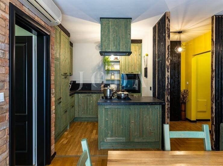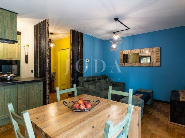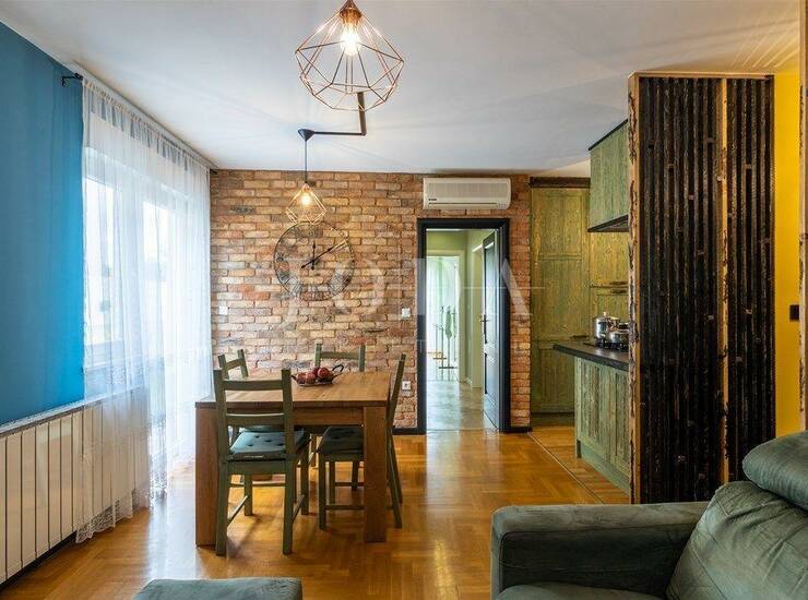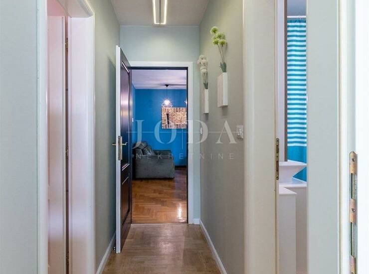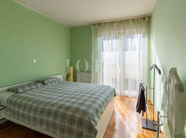 Stan je opremljen protuprovalnim ulaznim vratima,pvc stolarijom,na podu je hrastov parket debljine 21mm,rolete se spuštaju/dižu pomoću elektro motora,centralno grijanje na plin +klima uređaj za grijanje i hlađenje te Mitsubishi sustav rekuperacije zraka(prozračivanje prostora bez potrebe za otvaranjem prozora)