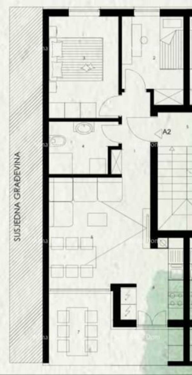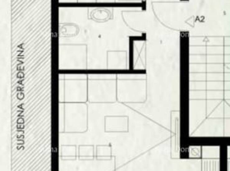 Stan A2 se nalazi na 1.katu zgrade C sa ukupno četiri stambene jedinice.