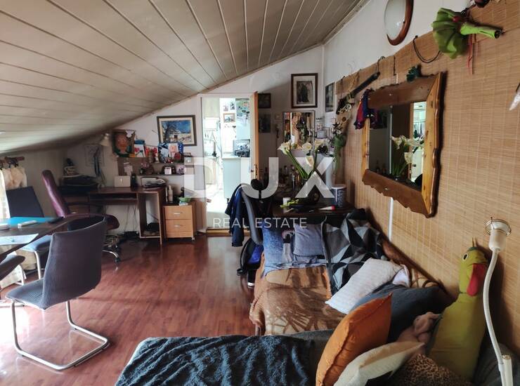 Stan se nalazi na 3.katu - mansardi stambene zgrade a sastoji se od 3 spavaće sobe, kuhinje, dnevnog boravka, kupaonice sa WC-om, hodnikom te balkonom sa predivnim pogledom na more - ukupne stambene površine 88.57 m2. U prizemlju zgrade se također nalazi legalizirani objekt veličine 40 m2 sa provedenom strujom i vodom te vlastitom kuhinjom i kupaonicom sa WC-om što otvara izvrsnu priliku iznajmljivanja stana za vrijeme turističke sezone. Zadnja renovacija stana rađena je 2020. godine, a legaliziranoga objekta 2019. godine. U stanu se također nalazi klima uređaj. Ono što čini ovaj stan unikatnim je njegova pozicija u samome centru Pule na svega nekoliko minuta lagane šetnje od svega potrebnog za život kao i prekrasan pogled na more na udaljenosti od samo 30 m do mora.