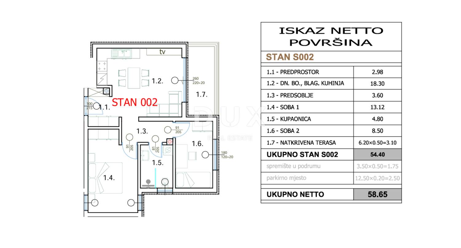 Nekretnini pripada i spremište u podrumu zgrade te vanjsko parkirno mjesto.