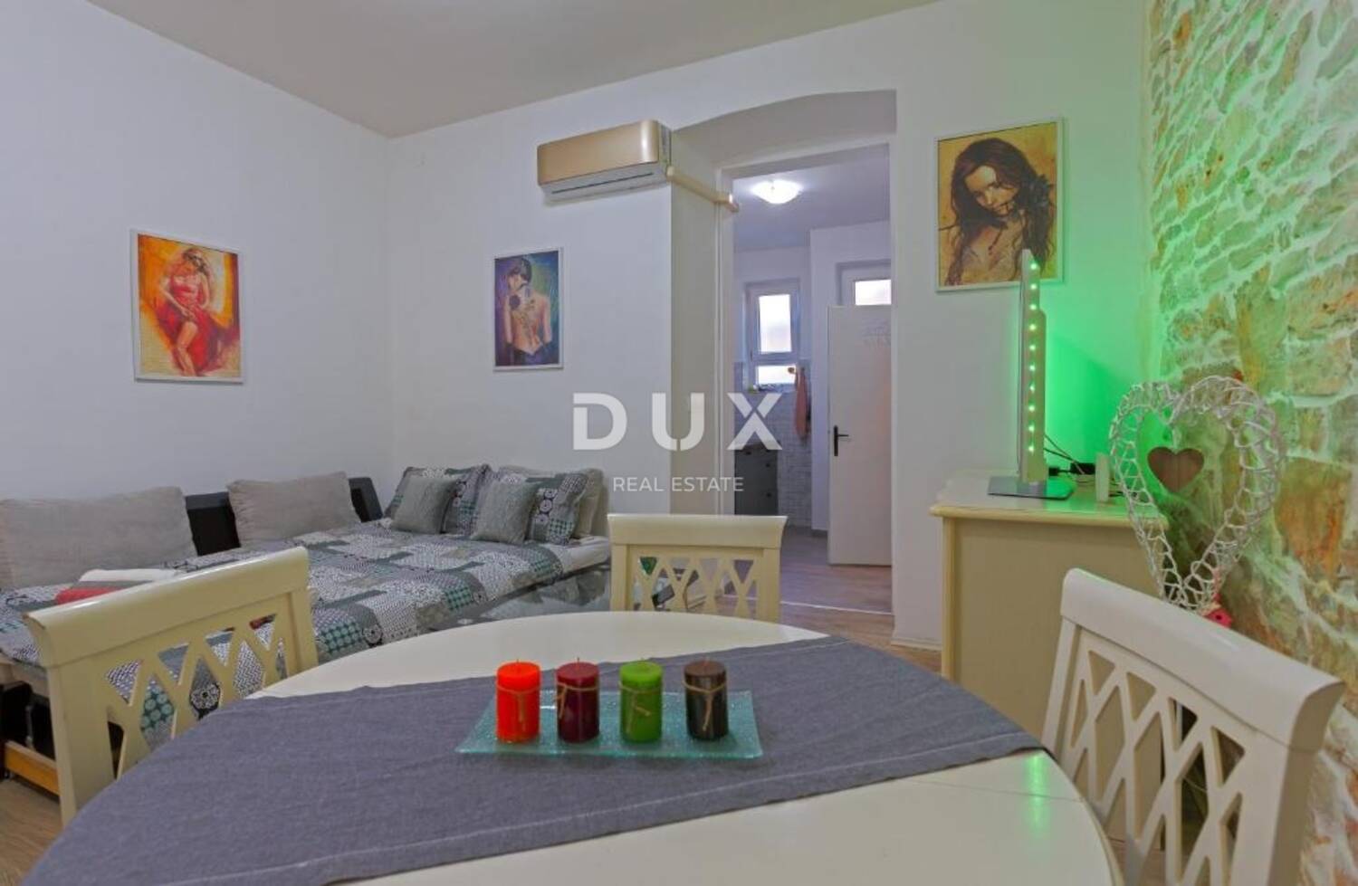 U samom povijesnom srcu Pula, na svega nekoliko minuta lagane šetnje od impresivnog Amfiteatar u Puli, smjestio se ovaj poseban stan s karakterom — nekretnina koja osvaja na prvi pogled svojom toplinom, stilom i autentičnom atmosferom.