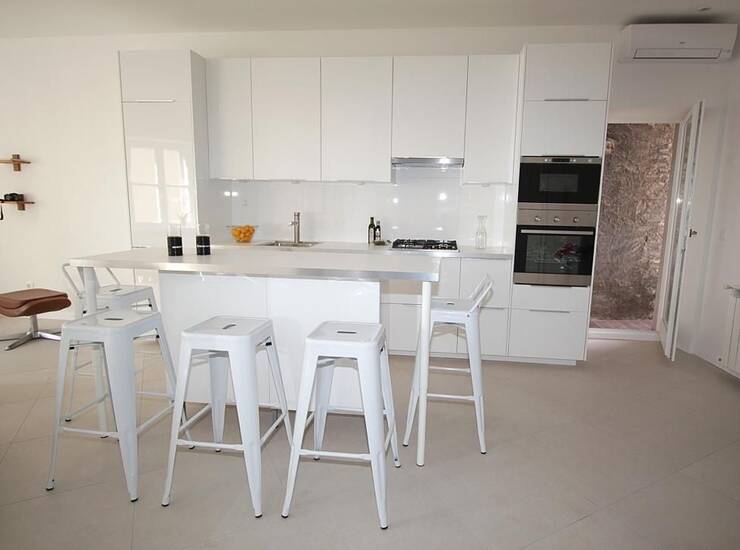 Na ulazu u stan smjestilo se predvorje koje odvaja prostor stana na dva dijela, privatni spavaći i dio namijenjena dnevnome životu i zabavi. Tako dio namijenjen dnevnome životu koncipiran je po sistemu "open space" prostora bez pregradnih zidova, a u kojemu imate priliku svoje vrijeme provoditi u većem i komotnijem dnevnome boravku s pristupom prema privatnoj ljetnoj terasi sa koje se pruža pogled na tirkizno plavo more. Pored dnevnoga boravka se smjestila i prostrana blagovaonica dovoljna za cijelu obitelj, kao i moderna te u potpunosti opremljena kuhinja.