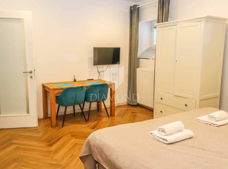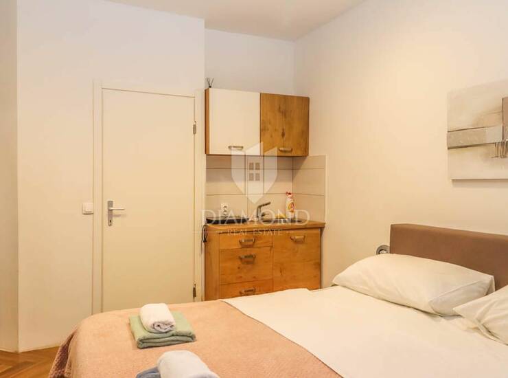Ovaj prostrani stan veličine 95m2 odvojen je u tri stambene jedinice. Dvije stambene jedinice su u tipu studio apartmana koji su veličine 22m2, sastoje se od prostorije sa kuhinjom i dnevnom sobom te kupaonice. Treća jedinica je u tipu jednosobnog stana, sastoji se od dnevnog boravka sa kuhinjom, spavaće sobe i kupaonice. Svi stanovi su renovirani, opremljeni te spremni za useljenje.