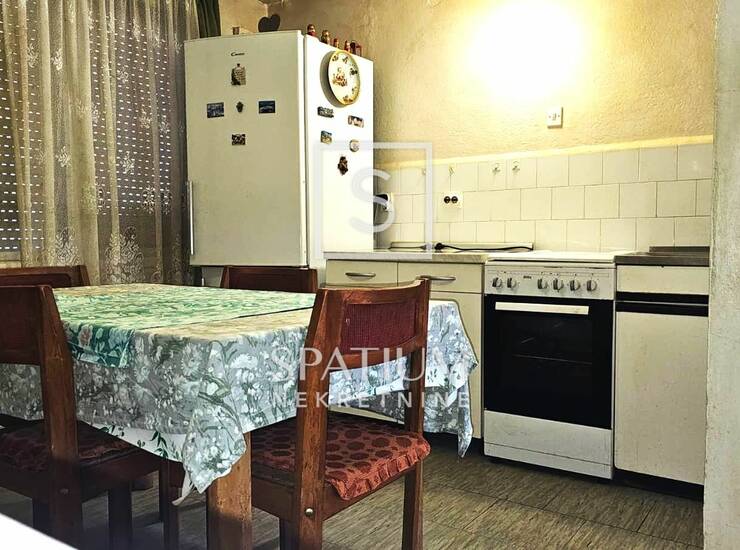 Podne obloge su parket, kulir i linoleum, dok je stolarija drvena. Stan ima dimnjak i mogućnost grijanja na peć na kruta goriva, a trenutačno se grije putem klima uređaja i peći. Nekretnina zahtijeva adaptaciju, što budućem vlasniku omogućuje prilagodbu prostora prema vlastitim željama.