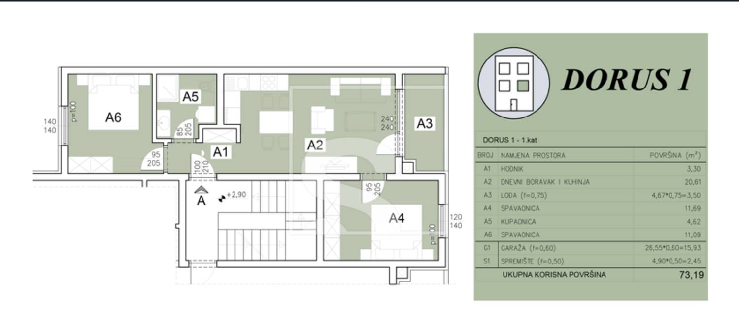 PULA, DVOSOBAN STAN NA PRVOM KATU I GARAŽA