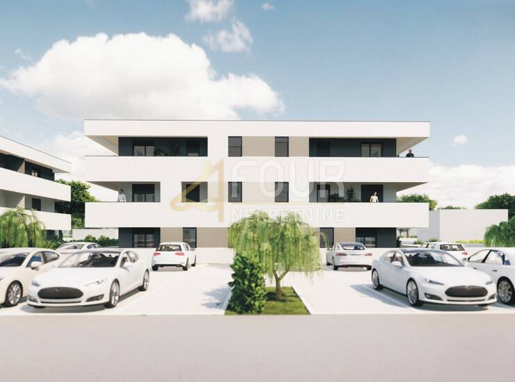 U ponudi je stan u novogradnji na mirnoj lokaciji, udaljenosti 4 km od centra Pule i 5 km od mora.