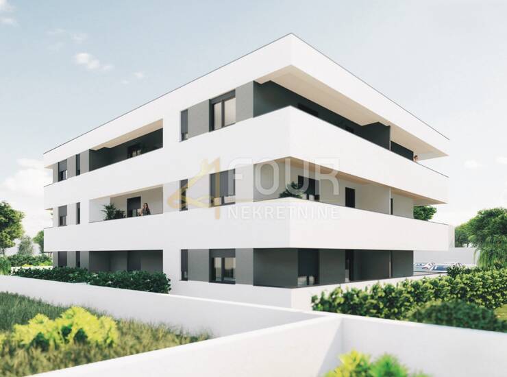 U ponudi je stan u novogradnji na mirnoj lokaciji, udaljenosti 4 km od centra Pule i 5 km od mora.