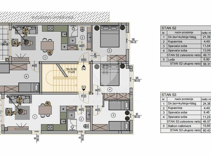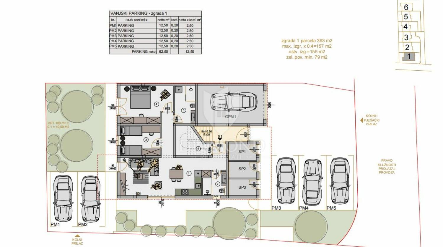 U sklopu modernog projekta na Kaštanjeru, koji obuhvaća 6 manjih zgrada s po 4 stana, u prodaji je stan S2 smješten na prvom katu, ukupne površine 54,66 m² + ostava 1,88 m² po koeficijentu.