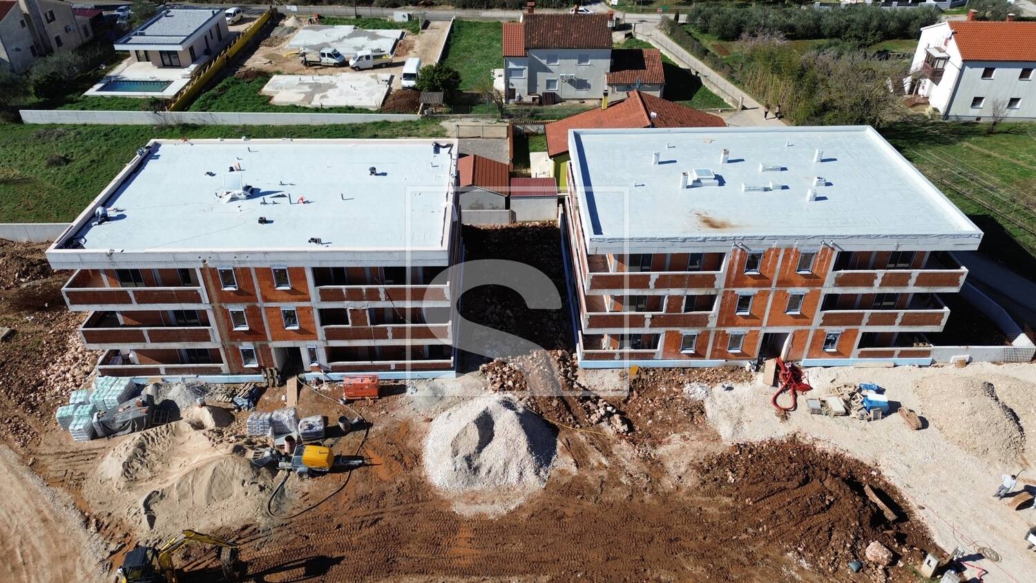 U već navedenom naselju, smjestio se ovaj novi projekt visokokvalitetne novogradnje! Projekt će se sastojati od ukupno 4 zgrade, od kojih će tri biti s po 15 stambenih jedinica te zadnja, četvrta, s 13 stambenih jedinica. Projektiranje, dizajn i arhitekturu potpisuje najveći projektantski studio u Puli koji djeluje i puno šire te ih krasi mnoštvo izvanrednih projekata! Koncept zgrada osmišljen je kao moderne dvokatnice sastavljene od stanova u prizemlju s dijelom dvorišta te stanovima na 1. i 2. katu s prostranim terasama.
