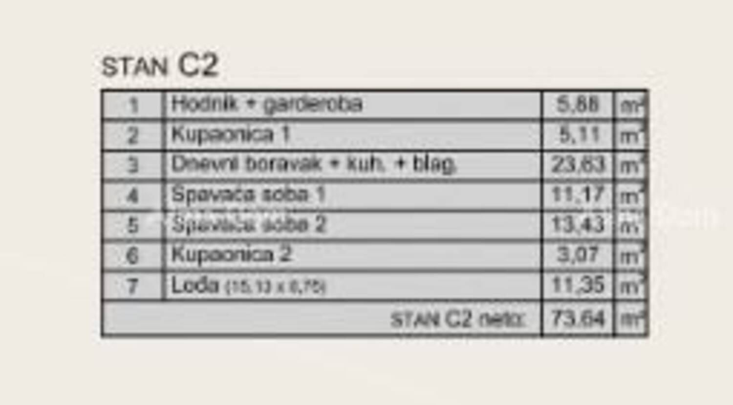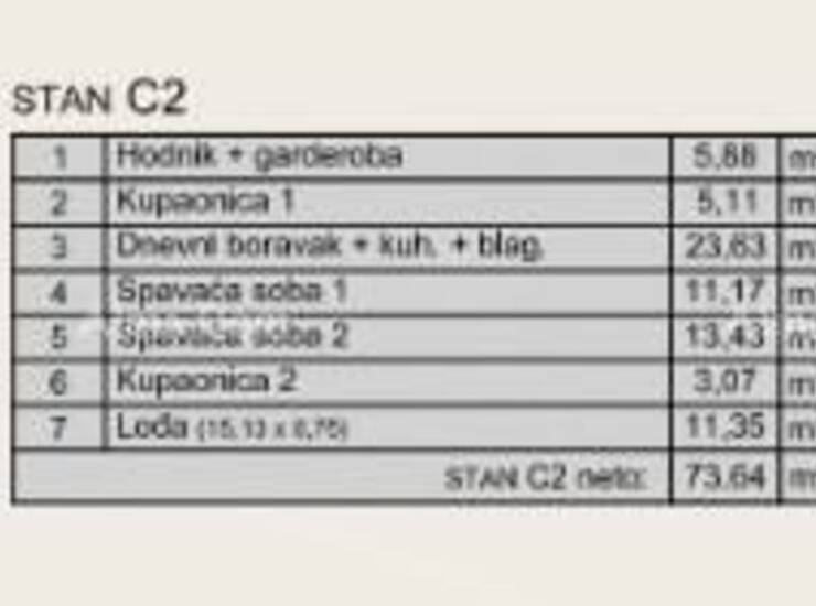 Stan C2, površine 73.64 m2, nalazi se u zgradi C.