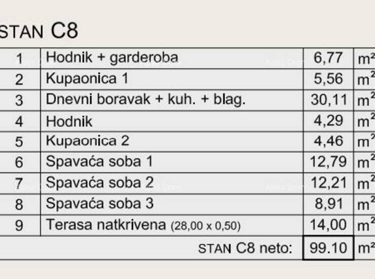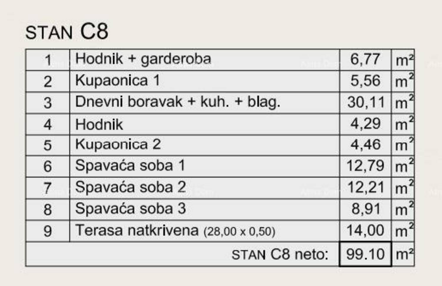 Stan C8, površine 99.10 m2, nalazi se u zgradi C.