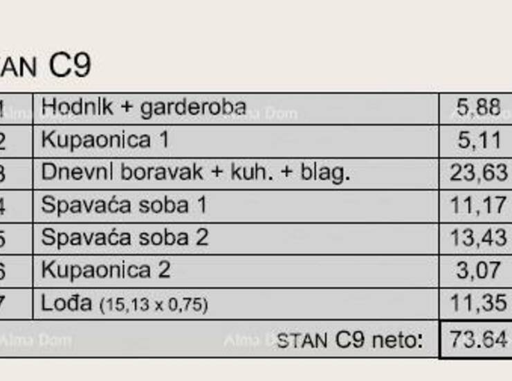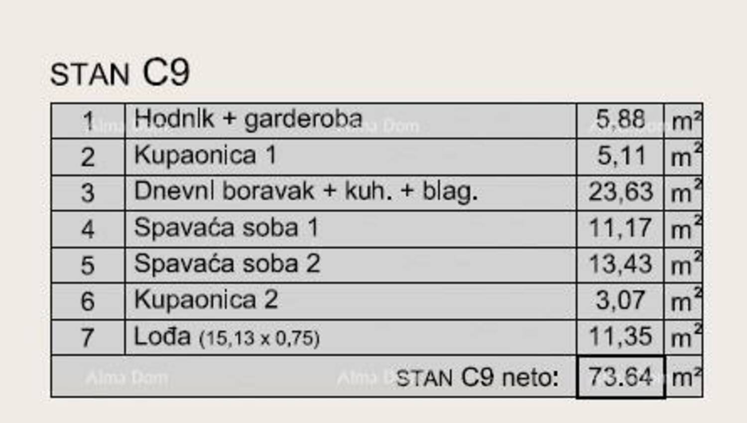 Stan C9, površine 73.64 m2, nalazi se u zgradi C.