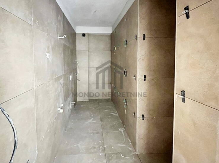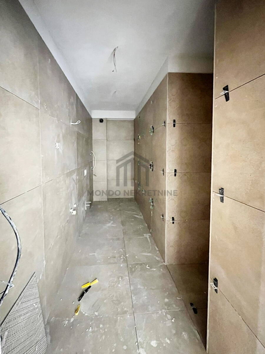 Stan se sastoji od ulaznog hodnika, dnevnog boravka s kuhinjom i blagovaonicom, spavaće sobe, kupaonice i terase. U cijenu je uključeno i garažno parkirno mjesto. Podno grijanje je u svim prostorijama.