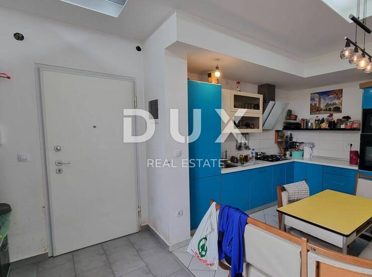 Ulazom u stan smjestilo se predvorje koje nas dočekuje, a tu se krije i prostor za garderobu. Isto nas predvorje zatim vodi prema dnevnome prostoru stana s nešto manje pregrada kako bi svaka prostorija imala svoju funkciju. Tako ovdje imate priliku svoje vrijeme provoditi u dnevnome boravku pozamašnih kvadratura, idealnom za zabavu s prijateljima i obitelji, kao i za odmor nakon aktivnoga dana. Uz dnevni boravak, blago izdvojene smjestile su se moderna i opremljena kuhinja s blagoavonicom dovoljnom za cijelu obitelj.