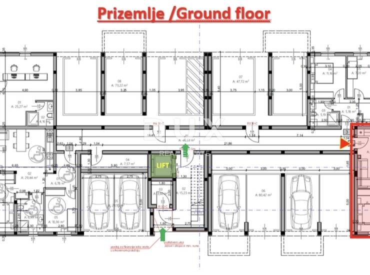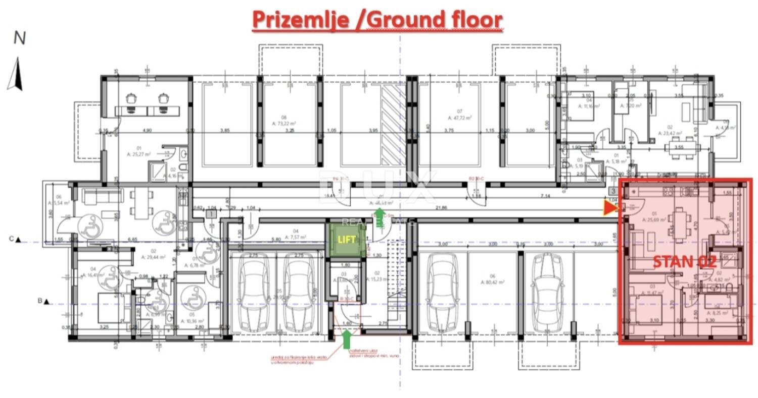 Uz stan obavezna je kupnja jednog parkirnog mjesta po cijeni od 8.162,50 € ili garažnog parkirnog mjesta ovisno o veličini po cijeni od 22.446,88 € - 26.528,13 €