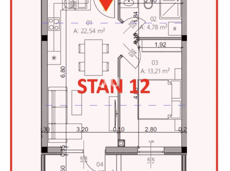 U ponudi imamo stan na prvom katu stambene zgrade. Sastoji se od ulaznog prostora, kuhinje sa blagovaonicom i dnevnog boravka, dvije spavaće sobe, kupaonice i balkona.