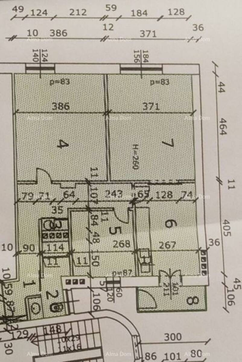 Na prodaju je dvosobni nenamješteni stan površine 72,83 m², smješten na 2. katu stambene zgrade u samom centru Pule.