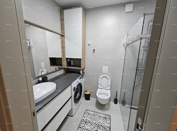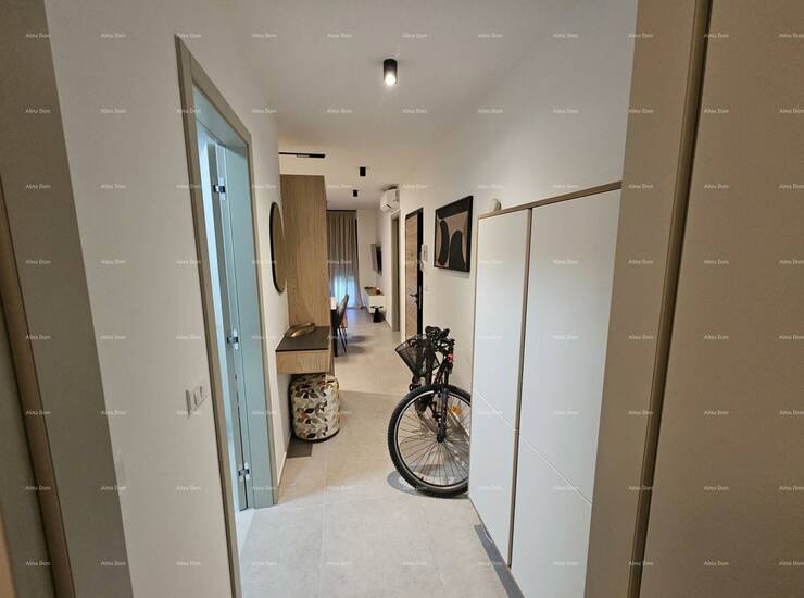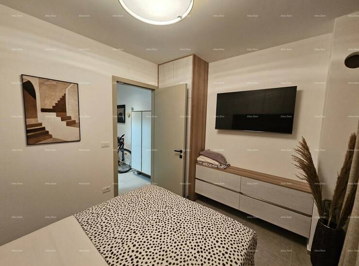 Na prodaju je potpuno novi, nikad korišten stan u prizemlju stambene zgrade, smješten u mirnom i uređenom dijelu Pule. Ovaj kvalitetno opremljen stan odlikuje se vrhunskom unutarnjom opremom, funkcionalnim rasporedom i lijepim vanjskim prostorom koji uključuje terasu, uređeni vrt, spremište i dva parkirna mjesta.
