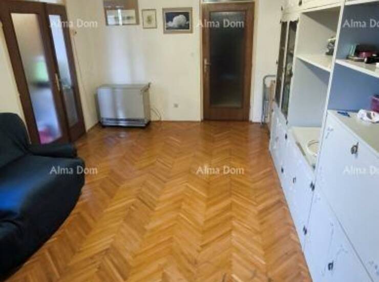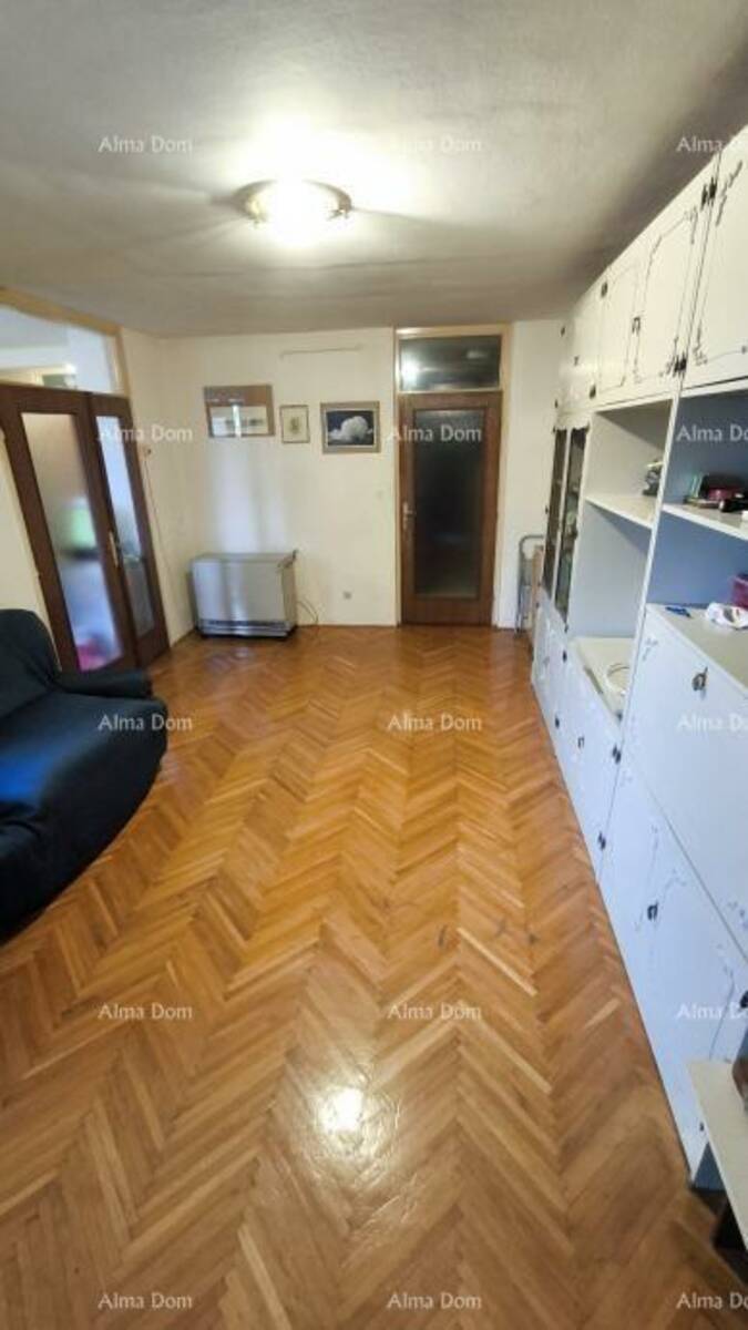 Na prodaju je prostran stan površine 88,32 m² smješten na četvrtom katu stambene zgrade bez lifta, izgrađene krajem osamdesetih godina, u samom centru Pula. Od glavne gradske tržnice udaljen je svega pet minuta hoda.