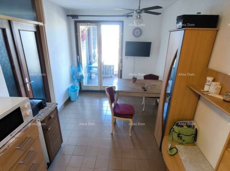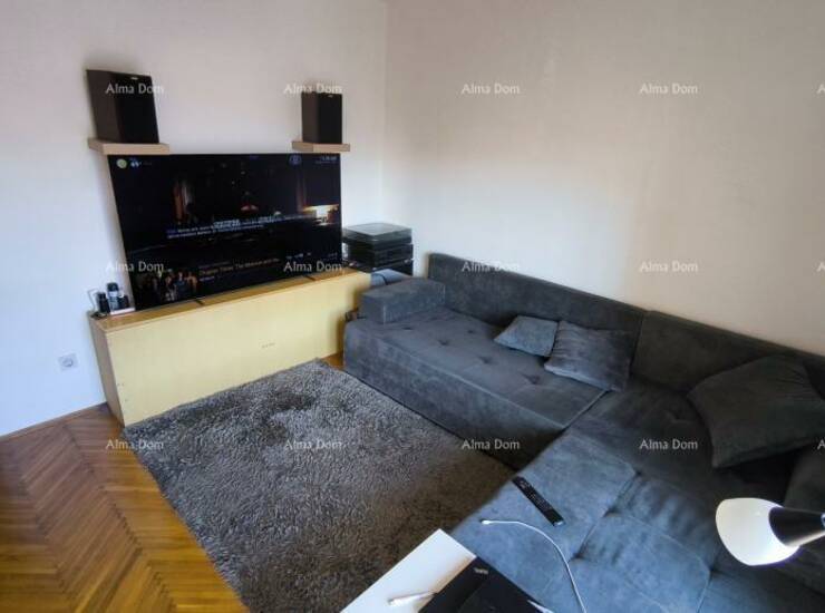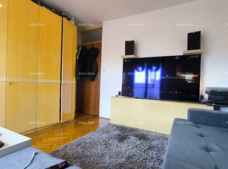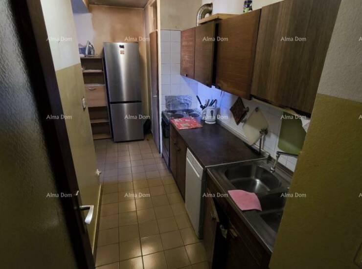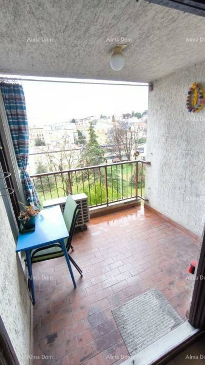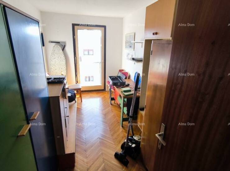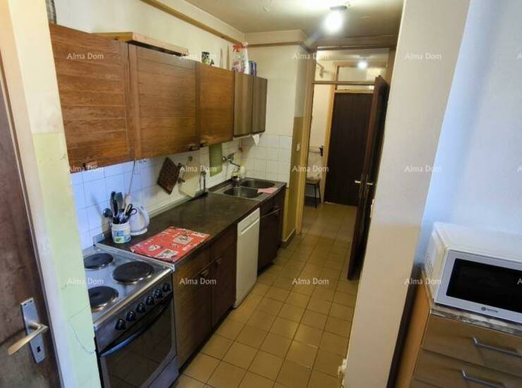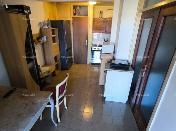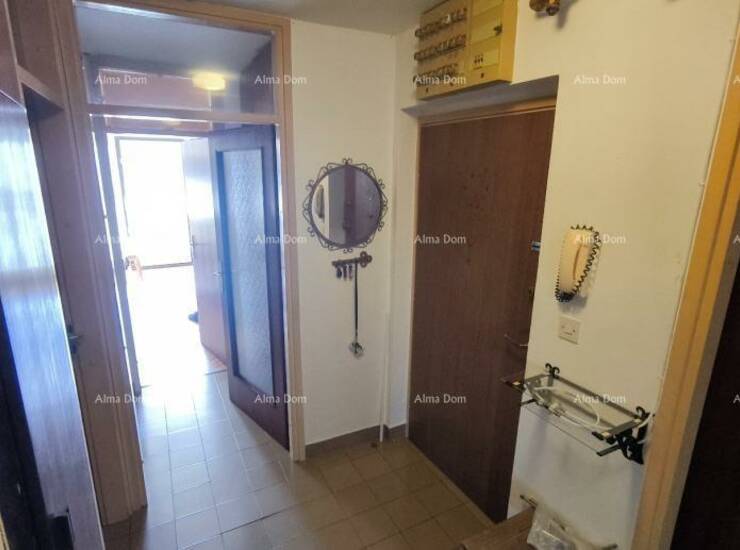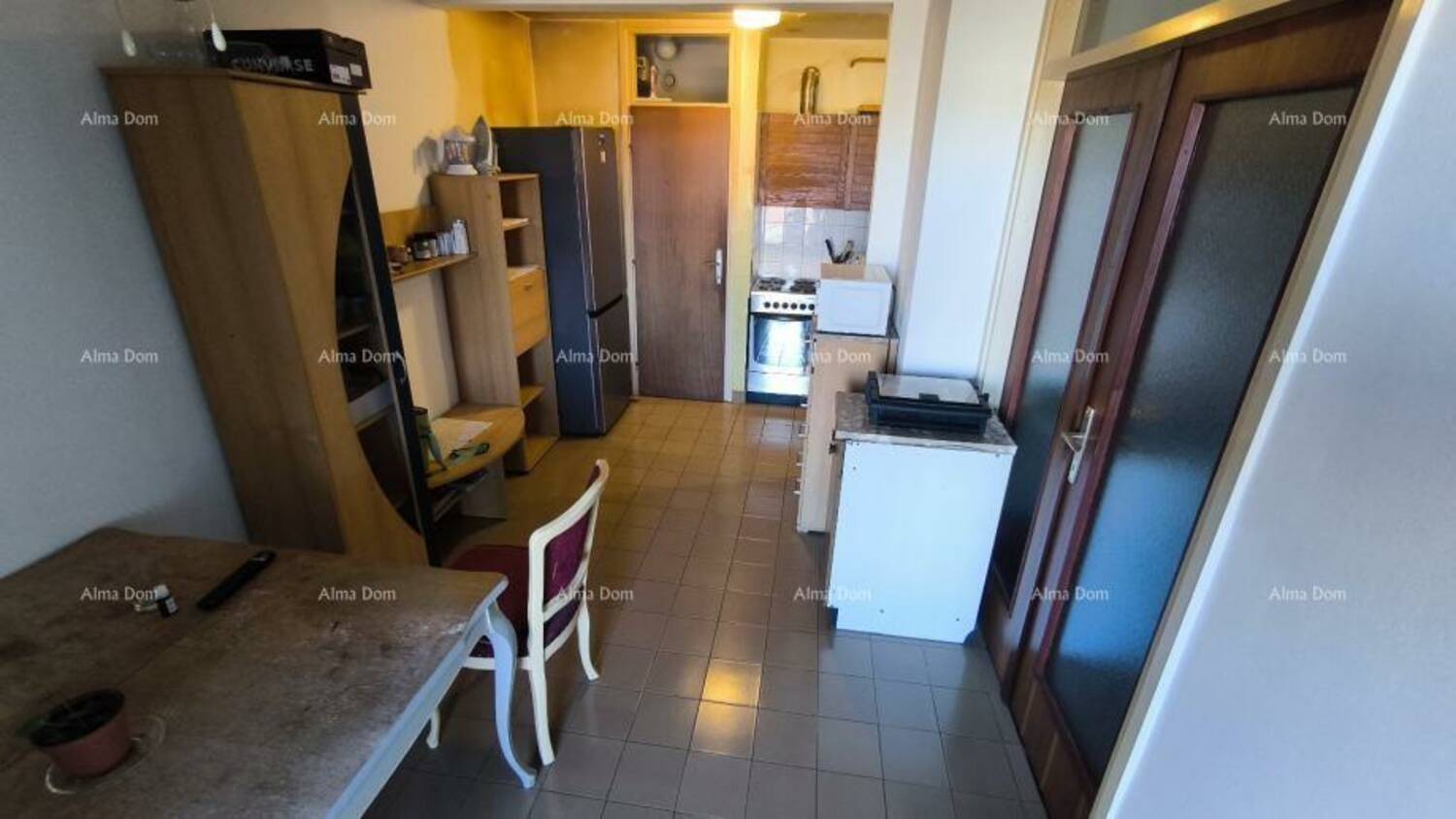 Na prodaju je prostran stan površine 88,32 m² smješten na četvrtom katu stambene zgrade bez lifta, izgrađene krajem osamdesetih godina, u samom centru Pula. Od glavne gradske tržnice udaljen je svega pet minuta hoda.