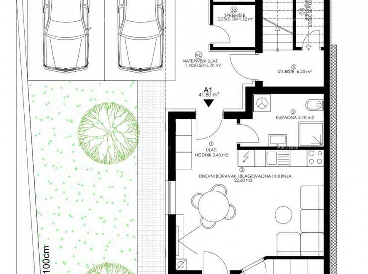 Novi stambeni projekt u mirnom dijelu Pule . Zgrada s tri etaže i ukupno tri stana – po jedan na svakoj etaži.