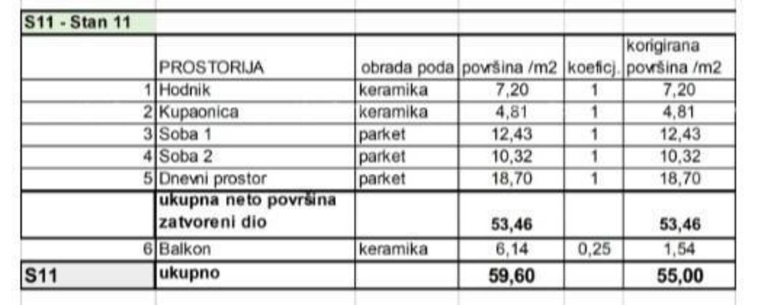Stan S11, nalazi sena 1.katu zgrade, površine 59,6 m2 (neto 55 m2).