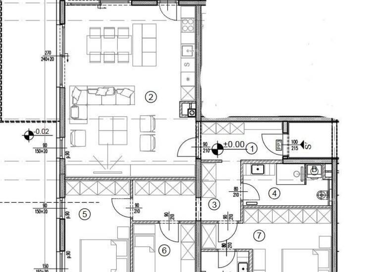 Stan se sastoji od honika, dnevnog boravka sa kuhinjom i blagavaonom, predprostora, 3 spavaće sobe, 2 kupaone.