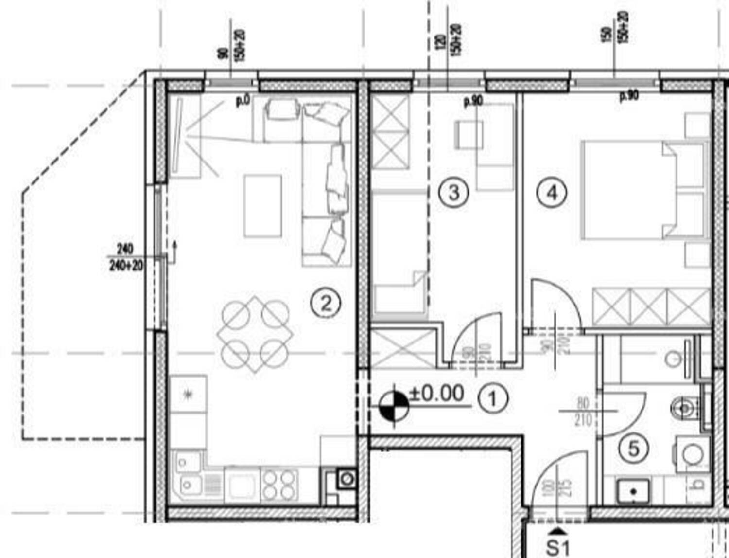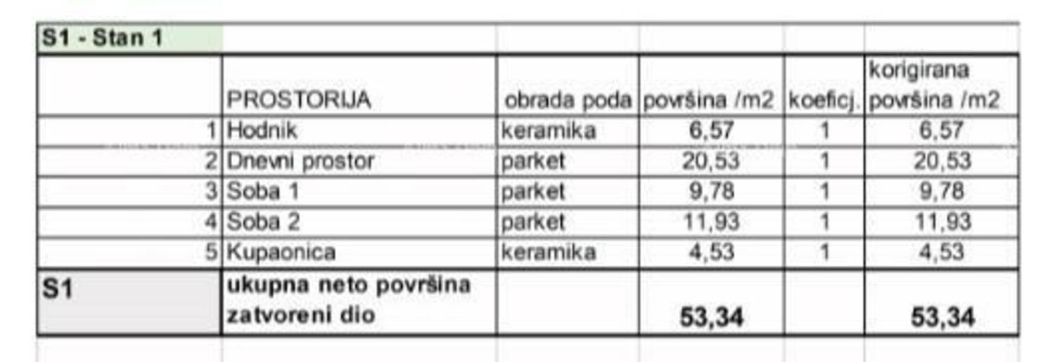 Stan S1, nalazi se u prizemlju zgrade, površine 53,34 m2.
