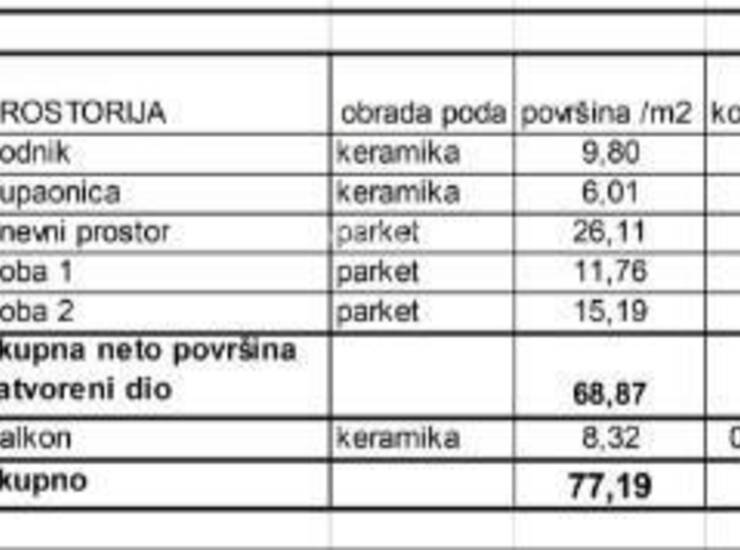Stan S15, nalazi se na 1 katu zgrade, površine 77,19 m2 (70,95m2).