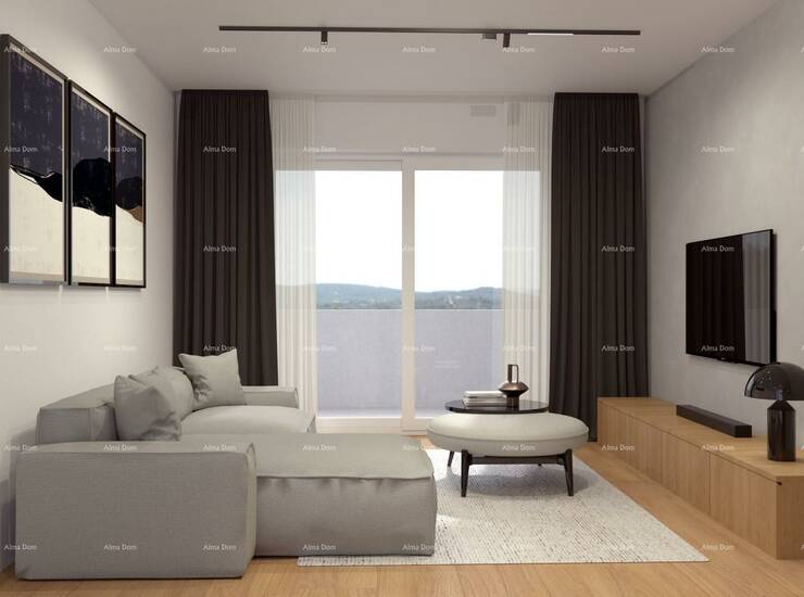 Na prodaju je moderan stan smješten na atraktivnoj lokaciji na ulazu u Pulu, u mirnom i uređenom dijelu grada. Projekt obuhvaća šest stambenih zgrada s ukupno 24 stana, a cijeli kompleks bit će zatvorenog i privatnog tipa, idealan za miran i siguran život.