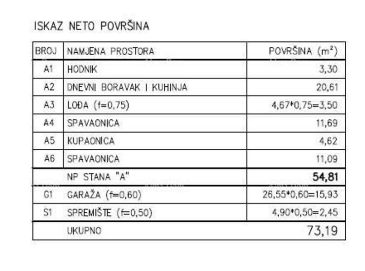 Stambeni prostor od 54,81 m² sastoji se od dnevnog boravka s kuhinjom i blagovaonicom, dvije spavaće sobe, kupaonice, hodnika i lođe koja pruža ugodan prostor za opuštanje.