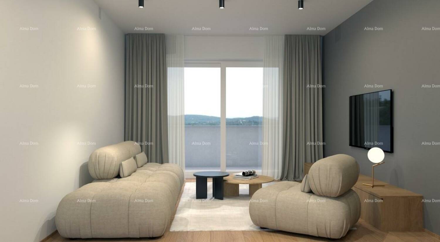 Na prodaju je moderan stan smješten na atraktivnoj lokaciji na ulazu u Pulu, u mirnom i uređenom dijelu grada. Projekt obuhvaća šest stambenih zgrada s ukupno 24 stana, a cijeli kompleks bit će zatvorenog i privatnog tipa, idealan za miran i siguran život.