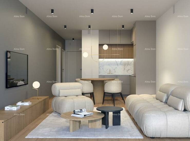 Na prodaju je moderan stan smješten na atraktivnoj lokaciji na ulazu u Pulu, u mirnom i uređenom dijelu grada. Projekt obuhvaća šest stambenih zgrada s ukupno 24 stana, a cijeli kompleks bit će zatvorenog i privatnog tipa, idealan za miran i siguran život.