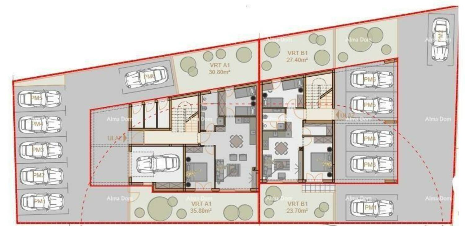Uz stan je obavezna kupnja parkirnog mjesta koje može biti natkriveno po cijeni od 18.750 ili nenatkriveno po cijeni od 7.500 eura.